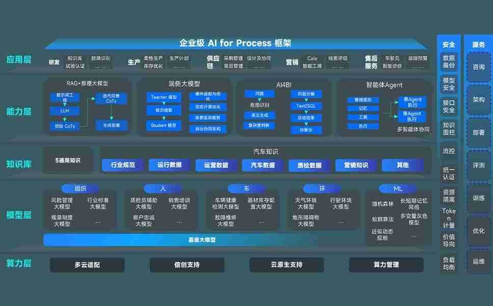 环球国际问学智车解决方案是一套基于AI技术的汽车行业智能化系统,,覆盖从底层算力到顶层AI应用的全栈方案。。方案由算力层、、、、模型层和应用层组成:算力层,,,,方案支持多种一体机配置,,,,具备云端灵活部署、、、多云适配以及动态优化计算资源的能力;模型层,,,,环球国际问学平台版提供了企业级AI应用一站式构建与管理平台,,,支持基于后训练强化技术的汽车企业专属模型的训练、、、、评测和运营;应用层,,,,环球国际问学DeepSeek版提供包括超级员工、、、、智能招采、、、智能营销、、智能客服、、、AI for BI等一系列解决方案,,,可助力汽车行业实现数字化转型,,,让管理更智能、、、、响应更敏捷。。